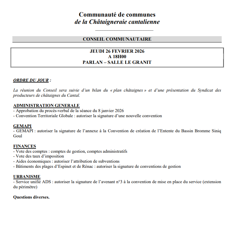 La Communauté de Communes de la Châtaigneraie Cantalienne