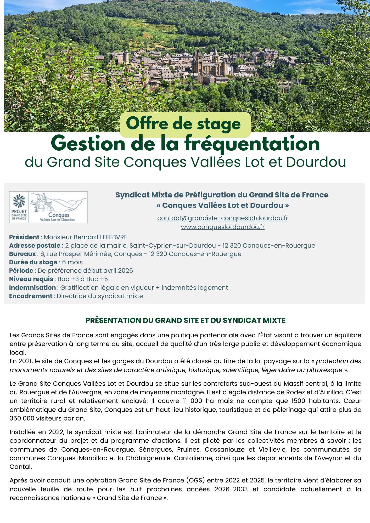 OFFRE DE STAGE - Grand Site Conques Vallées Lot et Dourdou