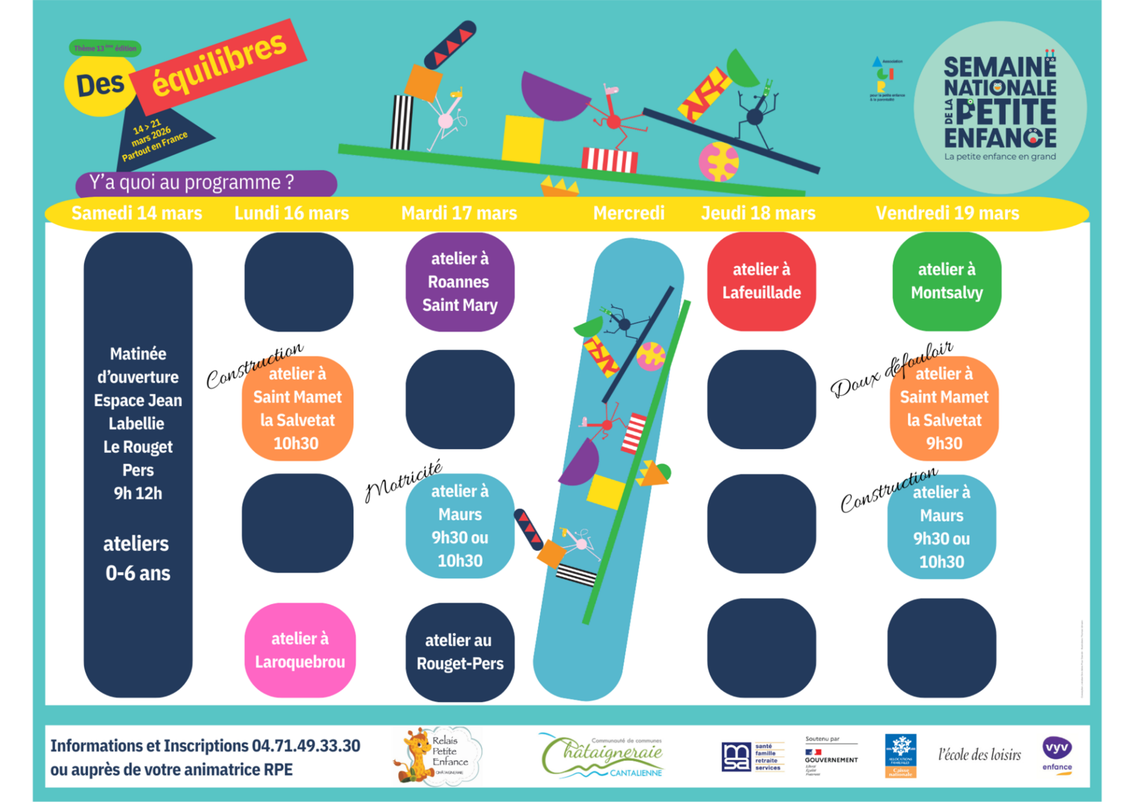 Retrouvez le programme de la Semaine Nationale de la Petite Enfance en Châtaigneraie Cantalienne ci-dessous :