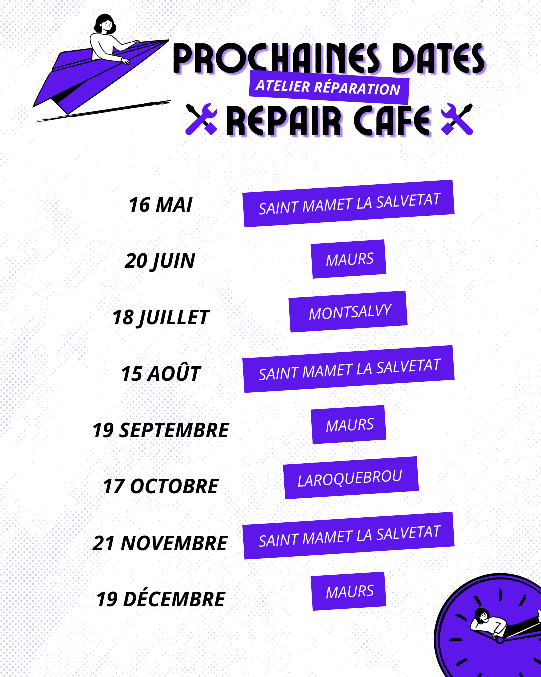 La communauté de Communes s’est rapprochée d’une association nommée La Scierie Créative, située à Ytrac, l’association propose d'animer des séances de Repair Café sur l’ensemble du territoire de la collectivité. Ainsi un atelier par mois sera organisé sur les différents pôles de la communauté de Communes, l’accès est gratuit et ouvert à tous les habitants de la Châtaigneraie Cantalienne.